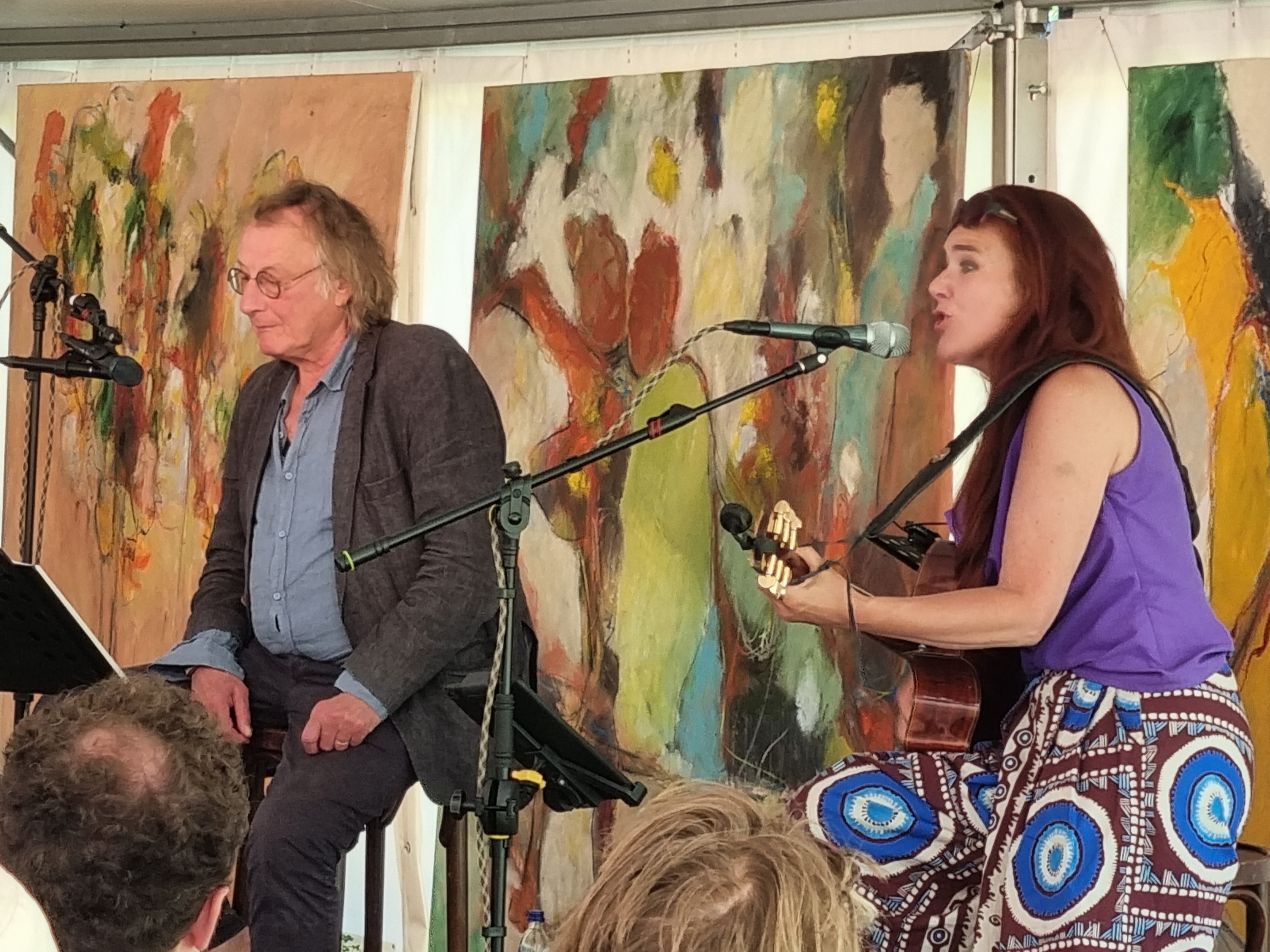 Tussen de optredens van de taalkunstenaars was er muziek en performance van Morjak en Martien Groeneveld.